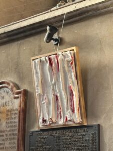 Materials: Acrylic, oils, and mixed media on wood – wood frame included